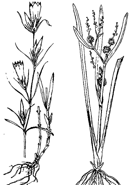 Рис. 43. Одноцветка одноцветковая. Рис. 44. Щавель водный (слева внизу — цветок).